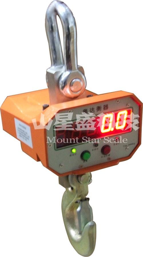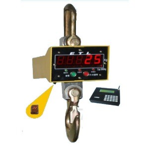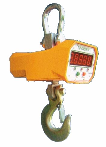 將電子吊秤的吊環(huán)掛在起重機(jī)的吊鉤上,當(dāng)電子吊秤的吊鉤上掛上物品后,在秤體內(nèi)的傳感器受到拉力產(chǎn)生變形,傳感器內(nèi)的電流發(fā)生變化,然后這個(gè)變化的電流通過A/D轉(zhuǎn)換,再通過發(fā)射機(jī)將無線電信號發(fā)出,根據(jù)國家無線電管理委員會的規(guī)定,電子吊秤一般是用230MHZ和450MHZ發(fā)出的,接收機(jī)接收到信號以后傳輸給儀表,然后經(jīng)過儀表的轉(zhuǎn)換計(jì)算,最終顯示出來。